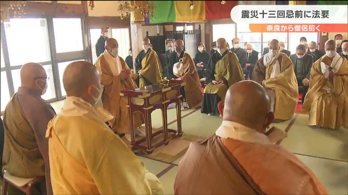 「被災者の痛みを軽減できればという思いで来た」奈良の唐招提寺・西大寺の僧侶ら仙台で震災の法要 2023年1月23日(月) 15:40 国内 東日本大震災からことしで十三回忌を迎えるのを前に、奈良の唐招提寺や西大寺の僧侶を招いた法要が仙台市内の寺院で営まれました。仙台市若林区の東禅院で営まれた法要には津波で家族を亡くした檀家や地域の人など…