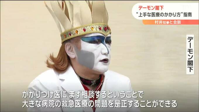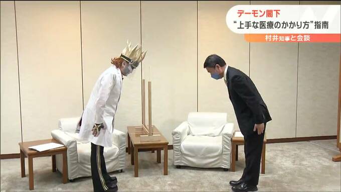 悪魔を自称する“デーモン閣下”が23日、宮城県庁を訪れ、村井知事に「上手な医療のかかり方」を指南しました。