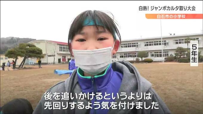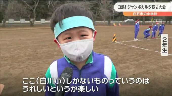 絵札は、縦およそ50㌢、横およそ40㌢で、児童たちがおよそ1か月かけて仕上げました。仲間や地域住民の声援を受けながら、児童たちは元気に校庭を走り回っていました。
