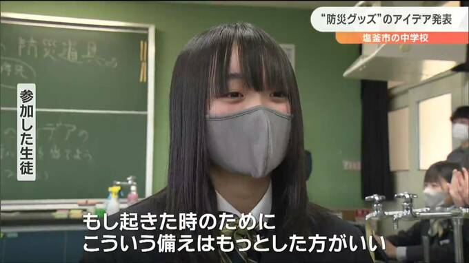 様々な災害に備えて、若い世代のアイデアを防災に取り入れようという取り組みです。宮城県塩釜市の中学校で、防災グッズをテーマにしたワークショップが開かれました。