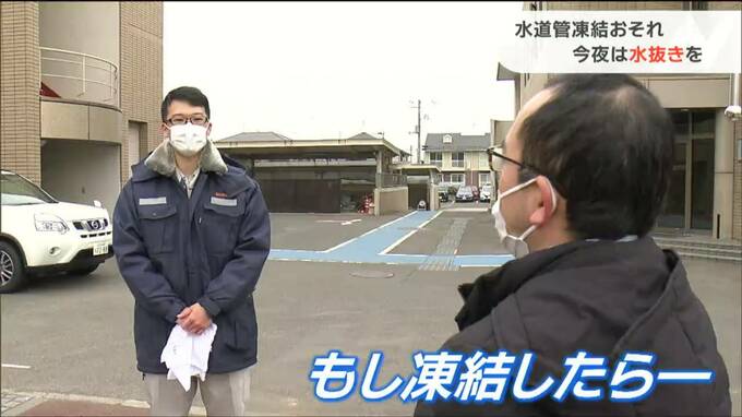 “最強寒波”で水道管の凍結!でも「水道管や蛇口に熱湯をかけてダメ」そのワケは? 2023年1月24日(火) 18:30 国内 強い寒気の影響で、宮城県内でも25日にかけて厳しい寒さとなる見込みです。仙台市水道局では、今夜は寝る前に水抜栓を操作してほしいと呼びかけています。仙台市水道局南配水課 米山大貴技師:「便宜上、外で作業…