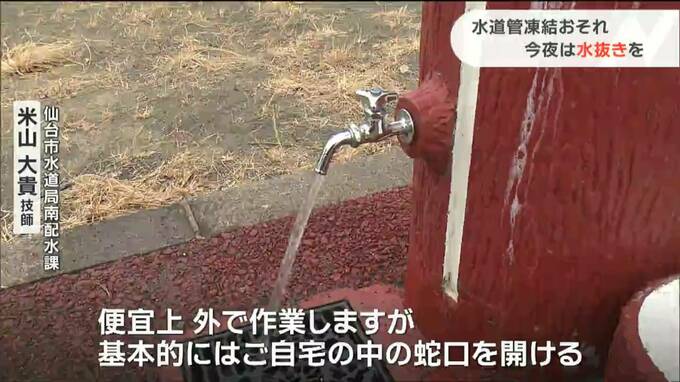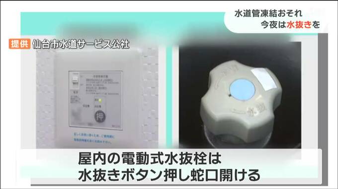 仙台市水道局では、今夜は寝る前に水抜栓を操作してほしいと呼びかけています。