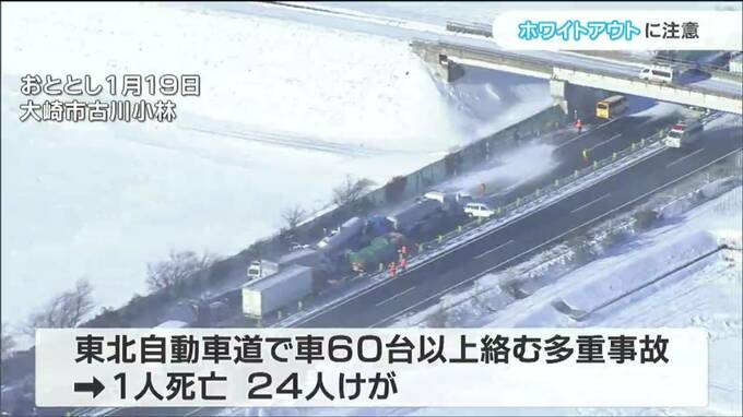 2021年1月19日、大崎市古川小林の東北自動車道で、車60台以上が絡む多重事故が発生し1人が死亡24人がけがをしました。