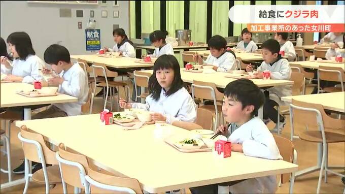 かつてクジラを加工する事業所があった宮城県女川町で25日、クジラ肉が学校給食で提供され、子どもたちが味わいました。