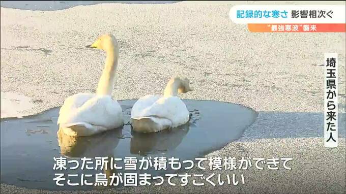 埼玉県から訪れた人「凍ってそこに雪が積って模様ができて、そこに鳥が固まってすごくいい」