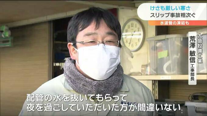 大盛設備工業 荒澤敏信工事部長:「寒波が来るのはわかると思うので、その時は水抜き線をあけてもらって配管の水を抜いてもらって、夜を過ごしていただいた方が間違いない」