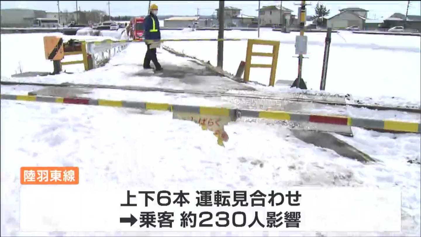現場は、遮断機と警報機のある踏切でこの事故により陸羽東線は、上下6本で運転を見合わせ乗客およそ230人に影響が出ました。