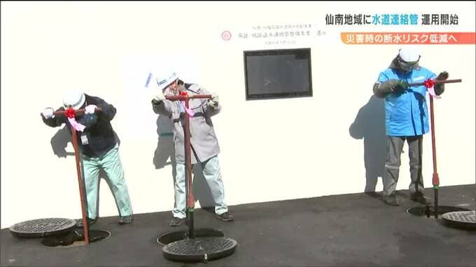 「より断水時間が短くなる」仙南地域の水道“バックアップ”連絡管の運用開始 宮城 2023年1月31日(火) 18:20 国内 災害などによる仙南地域の断水リスクを減らそうと、宮城県は村田町から岩沼市までを結ぶ水道の連絡管を新たに整備し、31日から運用を始めました。県が整備したのは村田町足立(あしたて)から岩沼市長岡まで長さ13…