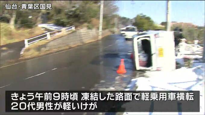 こうした中、2日午前9時頃、仙台市青葉区国見で、凍結した路面で軽乗用車が横転し、運転していた20代の男性が軽いけがをしました。