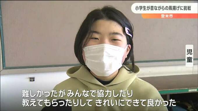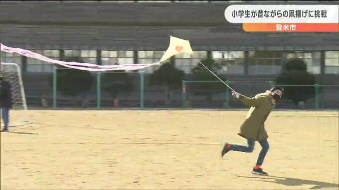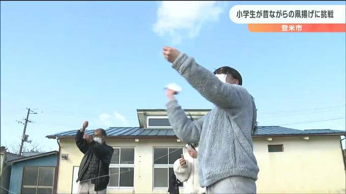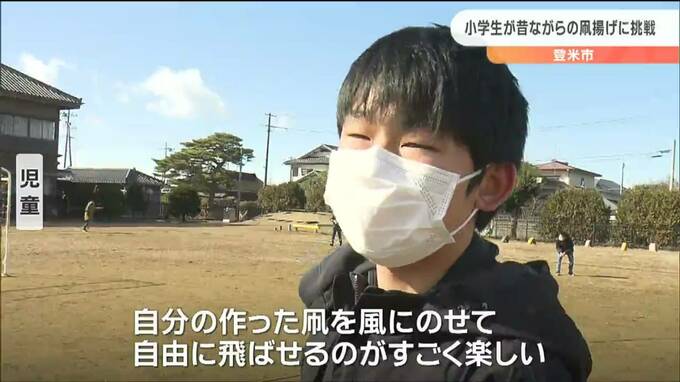 児童たちが手作りした凧が大空へと舞い上がりました。宮城県登米市の小学生が2日、凧づくりに挑戦し、昔ながらの凧揚げを楽しみました。