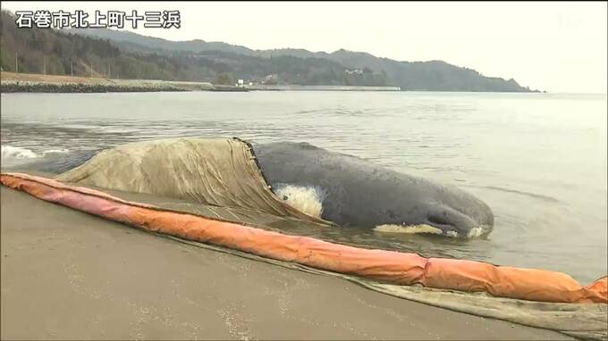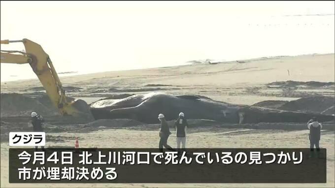 このクジラは、2月4日、北上川河口で死んでいるのが見つかり石巻市は、砂浜に埋めることを決めていました。