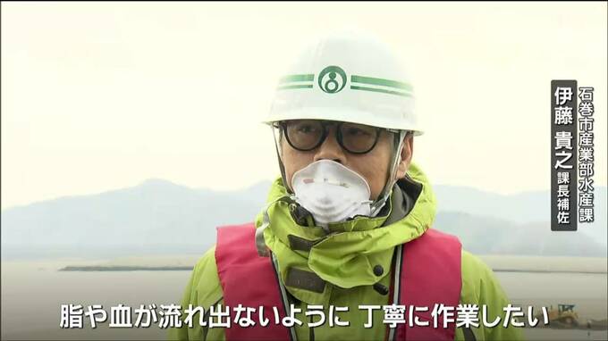 石巻市産業部水産課 伊藤貴之課長補佐:「想定ですと2mほど掘って埋却したい。血や脂が流れ出ないように丁寧に作業したい」