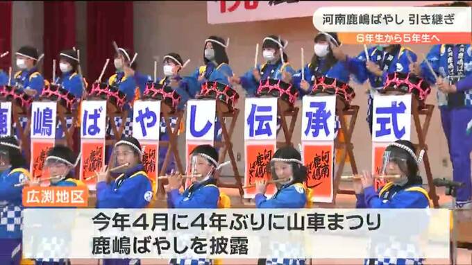 凶作・疫病を鎮める「河南鹿嶋ばやし」を小学校で下級生に伝承 宮城・石巻市 2023年2月10日(金) 18:20 国内 宮城県石巻市の小学校で、6年生が代々受け継いできた郷土芸能の「河南鹿嶋ばやし」を下級生に引き継ぐ伝承式が10日、行なわれました。石巻市立広渕小学校で行なわれた「河南鹿嶋ばやし」の伝承式では、6年生26人が…