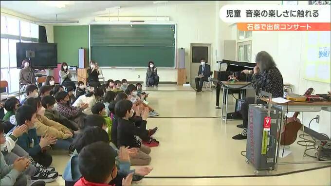 音楽で児童を楽しませようと、宮城県石巻市の小学校で、演出家による出前コンサートが13日行なわれ、動くおもちゃなどを使って楽しい音が奏でられました。