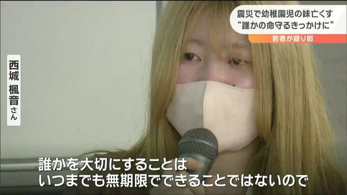 西城楓音さん:「大切にしたい人がいたらその方を大切にしてあげてください。誰かを大切にすることはいつまでも無期限でできることではないので。後悔しないよう大切な方と話してもらい、自分のお孫さんの幼稚園は命を守れる態勢になっているのかなとか、そういうところに目を向けてもらいたい」