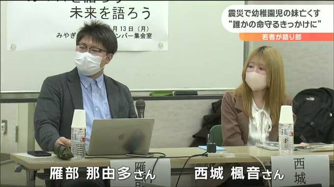 語り部をしたのは、震災当時、東松島市で被災した雁部那由多(23)さんと石巻市で被災した西城楓音(20)さんの2人です。