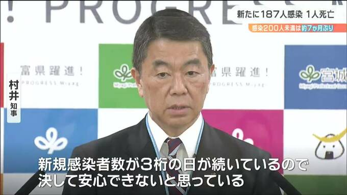 新型コロナウイルスについて、宮城県内では13日、新たに▼187人の感染と▼1人の死亡が確認されました。このように感染者数が減少傾向にあることを踏まえ、県は独自に出していた「みやぎ医療ひっ迫危機宣言」を13日で終了します。