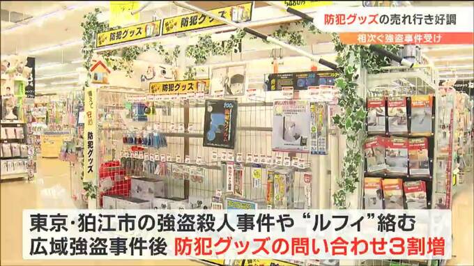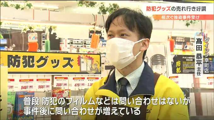 この店では、1月に起きた東京・狛江市での強盗殺人事件やルフィを名乗る指示役が絡んだ広域強盗事件後、防犯グッズの問い合わせが3割ほど増えたといいます。