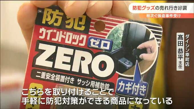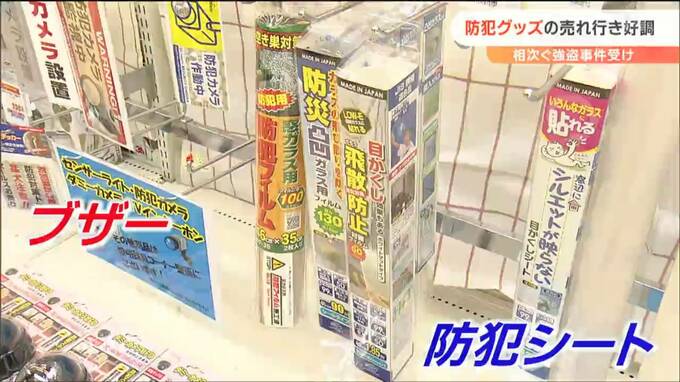 特に玄関のドアに取りつけるブザーや窓ガラスに貼る防犯シートなど、簡易的に対策ができるグッズの売り上げが伸びているということです。