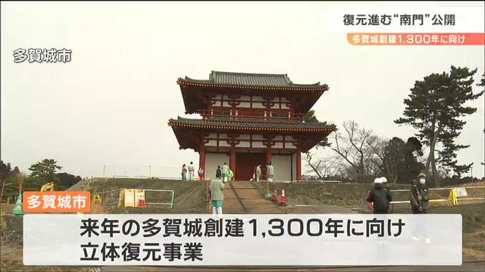 多賀城市は、来年の多賀城創建1300年に向け、多賀城跡の立体復元事業を進めています。南門の復元は「東日本大震災の復興のシンボル」として始められ、総工費22億円をかけて2019年から工事が続けられています。