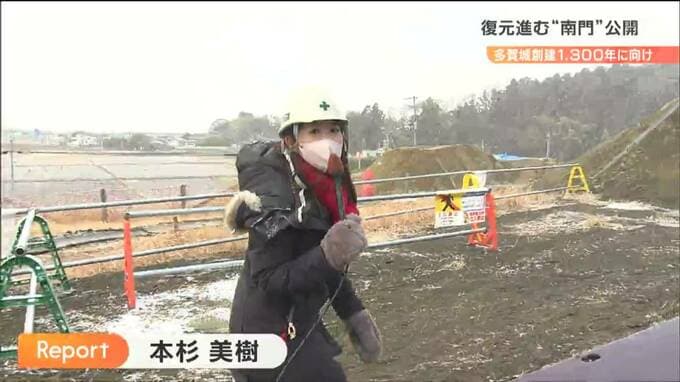 本杉美樹記者:「復元工事が続けられている多賀城南門、初めてその姿が公開されました」