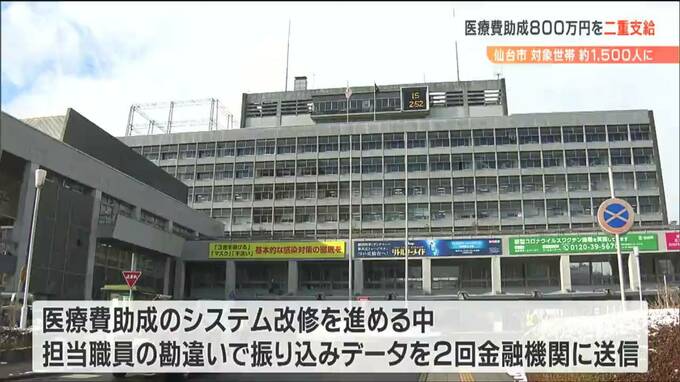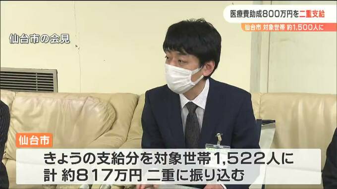 仙台市が「母子・父子家庭医療費助成」などの対象世帯およそ1500人に、助成金合わせて800万円を二重支給していたことがわかりました。