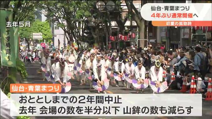 仙台・青葉まつりは、新型コロナの影響でおととしまでの2年間は中止、去年は会場の数を半分以下にし、山鉾の数も減らすなど規模を縮小して開催していました。
