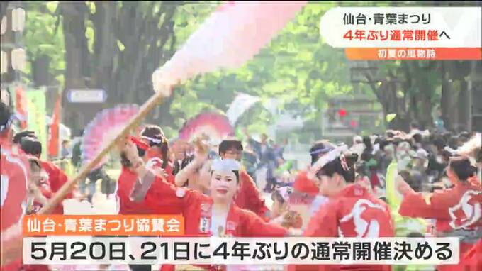 今年5月8日に新型コロナの感染症法上の位置づけが5類相当に引き下げられることから、仙台・青葉まつり協賛会は5月20日と21日の2日間、4年ぶりとなる通常規模での開催を決めました。