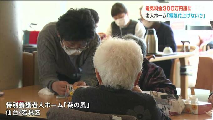 高騰が続く電気料金についてです。仙台市内の老人ホームも例外ではなく電気料金が過去最高となるなど経営が圧迫されています。