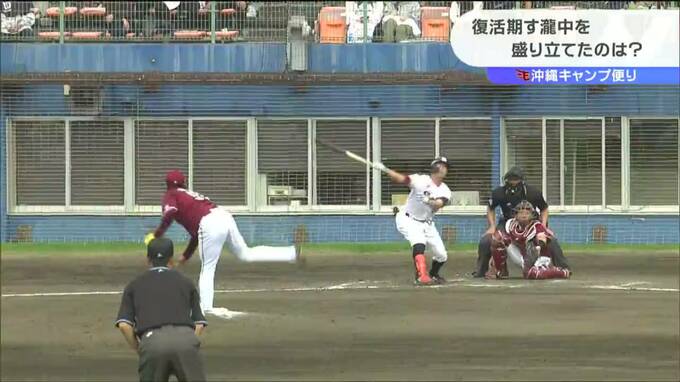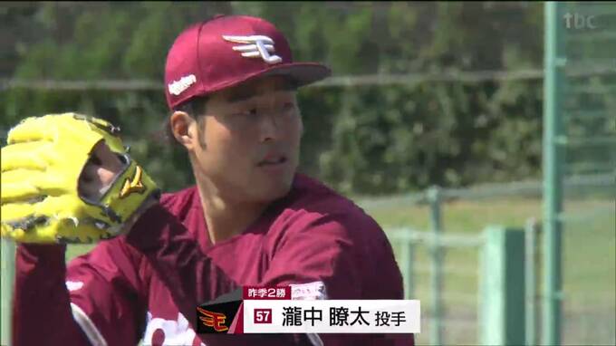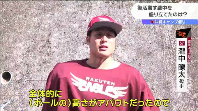 沖縄から楽天のキャンプ情報です。15日はヤクルトとの練習試合が行われ、開幕ローテーション入りを目指す瀧中瞭太投手が初めての実戦にのぞみました。