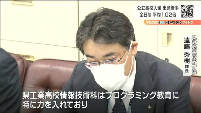 3月6日に行われる公立高校入試の出願倍率が17日発表されました。全日制の出願倍率は平均で▼1.02倍で、最も高かったのは県工業高校情報技術科の▼2.13倍でした。