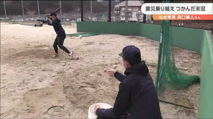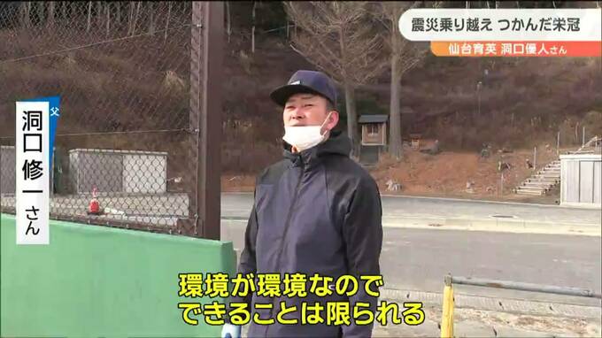 父の洞口修一さんです。優人さんが岩手の富士大学に進学することになり、仕事が休みだったこの日は練習を手伝いました。幼い頃からこうして応援してきました。