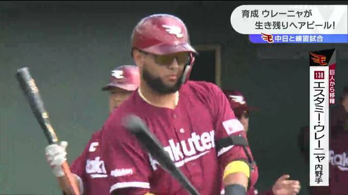 楽天が中日と練習試合 育成ウレーニャ「開幕1軍へ猛アピール」 2023年2月22日(水) 18:30 国内 スポーツは沖縄で調整を続ける楽天。シーズン開幕に向け22日は中日との練習試合に臨みました。生き残りをかけた競争のなか育成のウレーーニャがアピールしました。沖縄・北谷で中日との練習試合。試合前には、その…