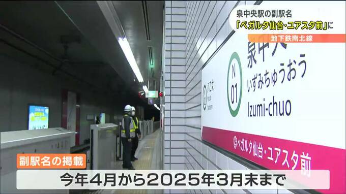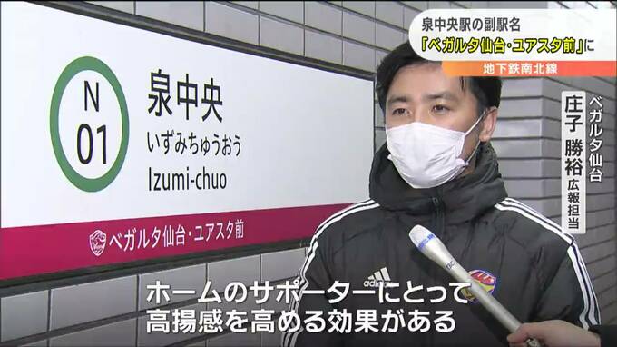 「泉中央」の下に新たに「ベガルタ仙台・ユアスタ前」の副駅名が付きました。