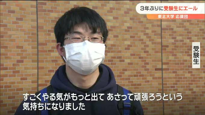 23日、仙台駅前で受験生にエールを送ったのは、東北大学の応援団員35人です。東北大学応援団部の伝統の催しで、新型コロナの影響で3年ぶりに行われました。