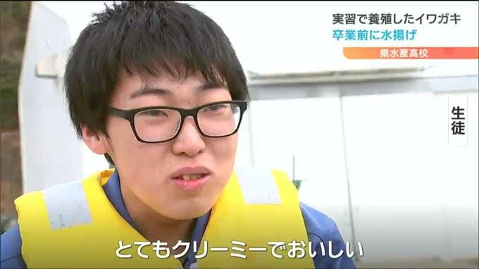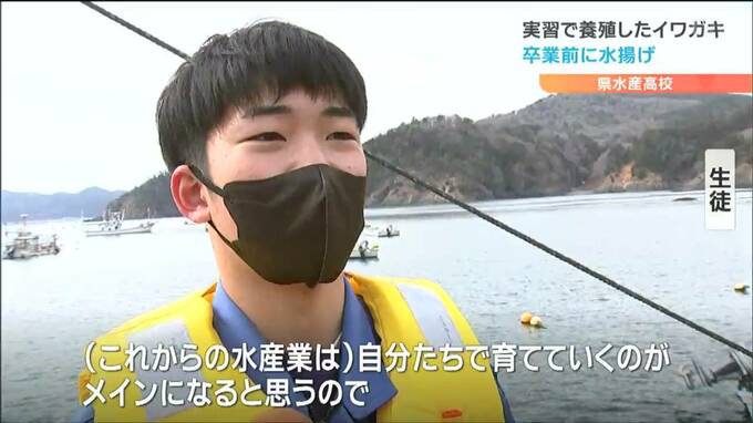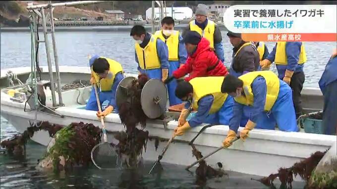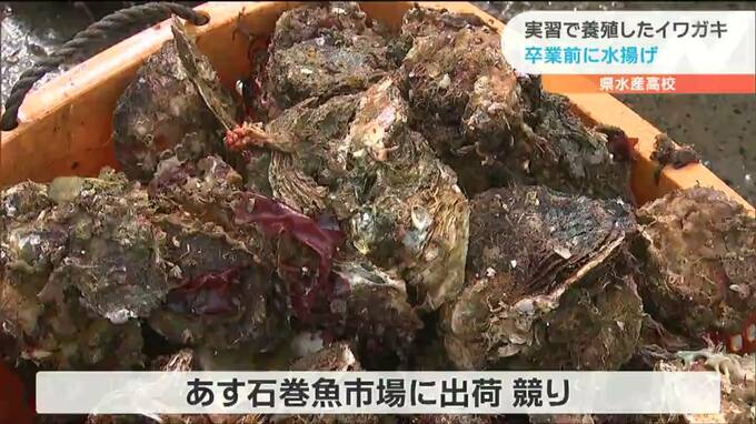3月1日の卒業式を前に、宮城県石巻市の水産高校の生徒たちが24日、実習で養殖をしてきたイワガキを水揚げしました。
