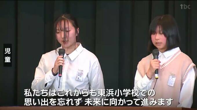 「思い出忘れず未来へ」全校児童2人だけ 牡鹿半島の小学校で閉校式 宮城・石巻市 2023年2月25日(土) 15:13 国内 全校児童が2人しかいない宮城県石巻市の牡鹿半島の小学校で25日、閉校式が行われました。石巻市立東浜小学校の閉校式では、市の教育委員会に校旗が返納された後、児童2人が登壇しました。児童「私たちはこれからも…