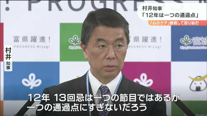 「遺族には一つの通過点にすぎない」震災まもなく12年で村井知事「支援は25年間は継続すべき」宮城 2023年2月27日(月) 14:01 国内 来月11日で東日本大震災発生から丸12年となります。村井知事は27日、「12年は一つの通過点に過ぎない」との見解を示し、積み残された課題として家族を亡くした人たちへの心のケアなどに継続して取り組んでいくと述…