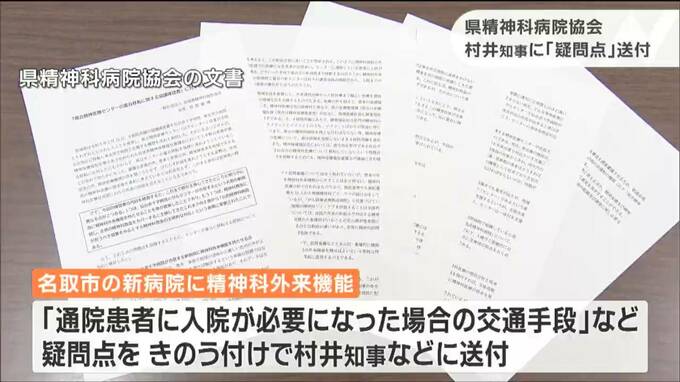 一方、県精神科病院協会は、名取市につくる新病院に精神科外来機能を持たせるとしたことをめぐり、通院の患者に入院が必要になった場合の移動手段をどうするのかなど疑問点を27日付けで村井知事などに送り、「このままでは宮城県の精神科医療は、長期にわたり低迷する」と断じています。