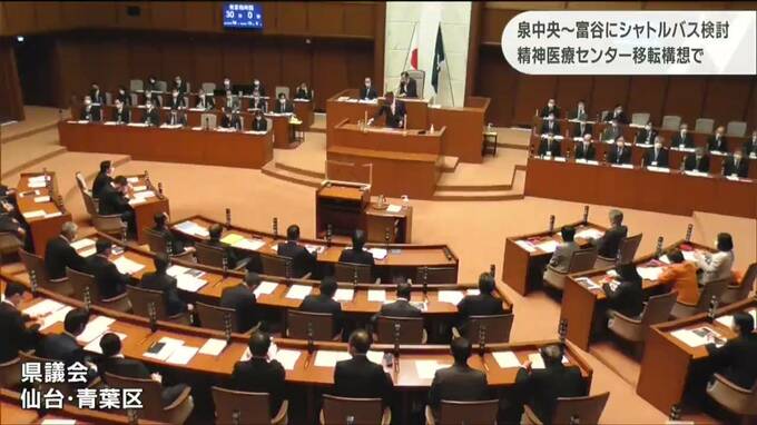 仙台医療圏4病院の再編・移転構想についてです。村井知事は18日、県立精神医療センターの名取市から富谷市への移転で、仙台市地下鉄泉中央駅からシャトルバスの運行を検討していると明らかにしました。