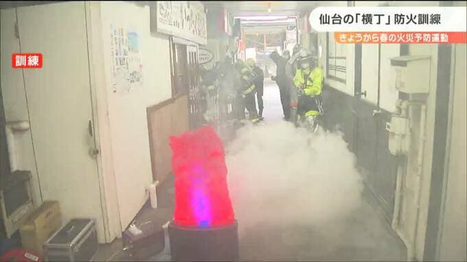 「狭い路地での火事を想定」商店街で防火訓練【春の火災予防運動】 仙台 2023年3月1日(水) 18:20 国内 1日から全国で始まった春の火災予防運動に合わせ、仙台市では、狭い路地にある商店街での火災を想定した防火訓練が行われました。仙台市青葉区一番町の「壱弐参(いろは)横丁」で行われた訓練には、商店主や飲食…