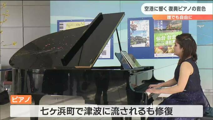 震災の発生から12年となるのを前に、仙台空港に、津波で被災しながらも復活したピアノが設置されています。誰でも弾くことができ、訪れた人が思い思いの音色を響かせています。