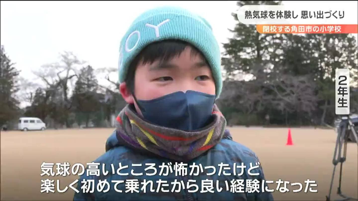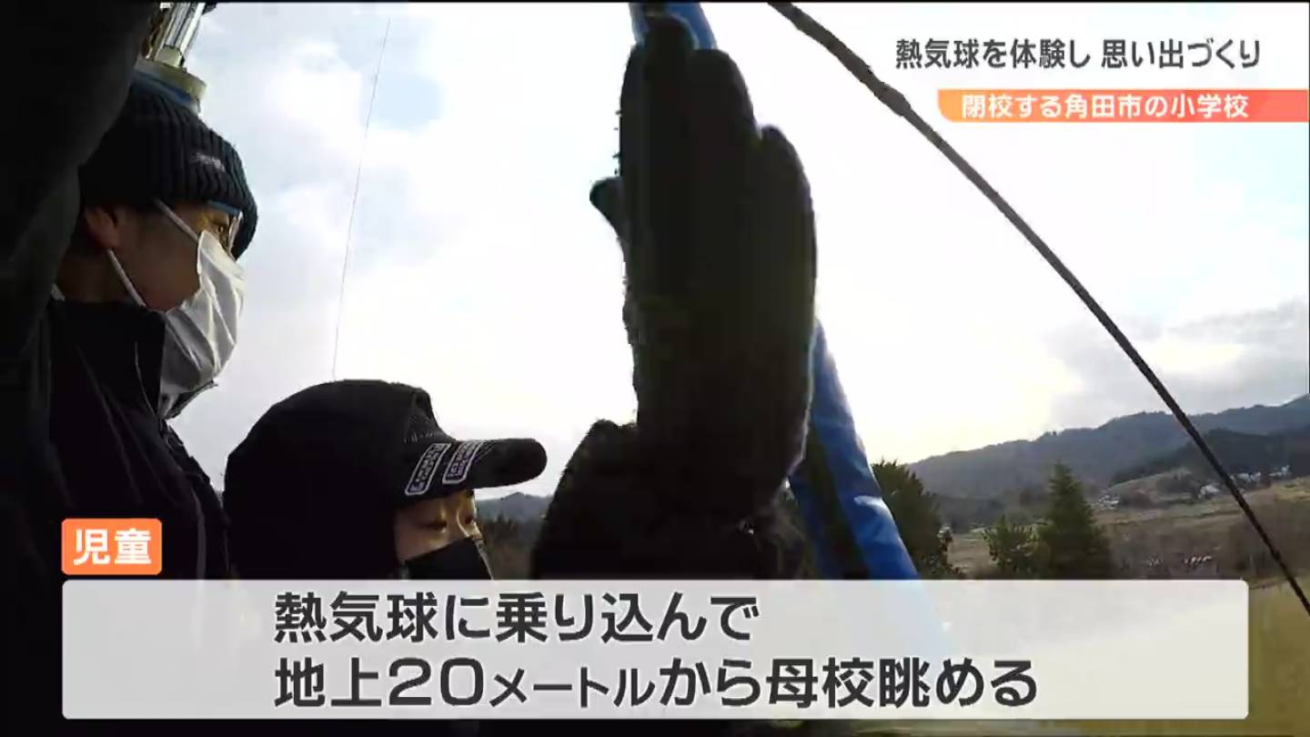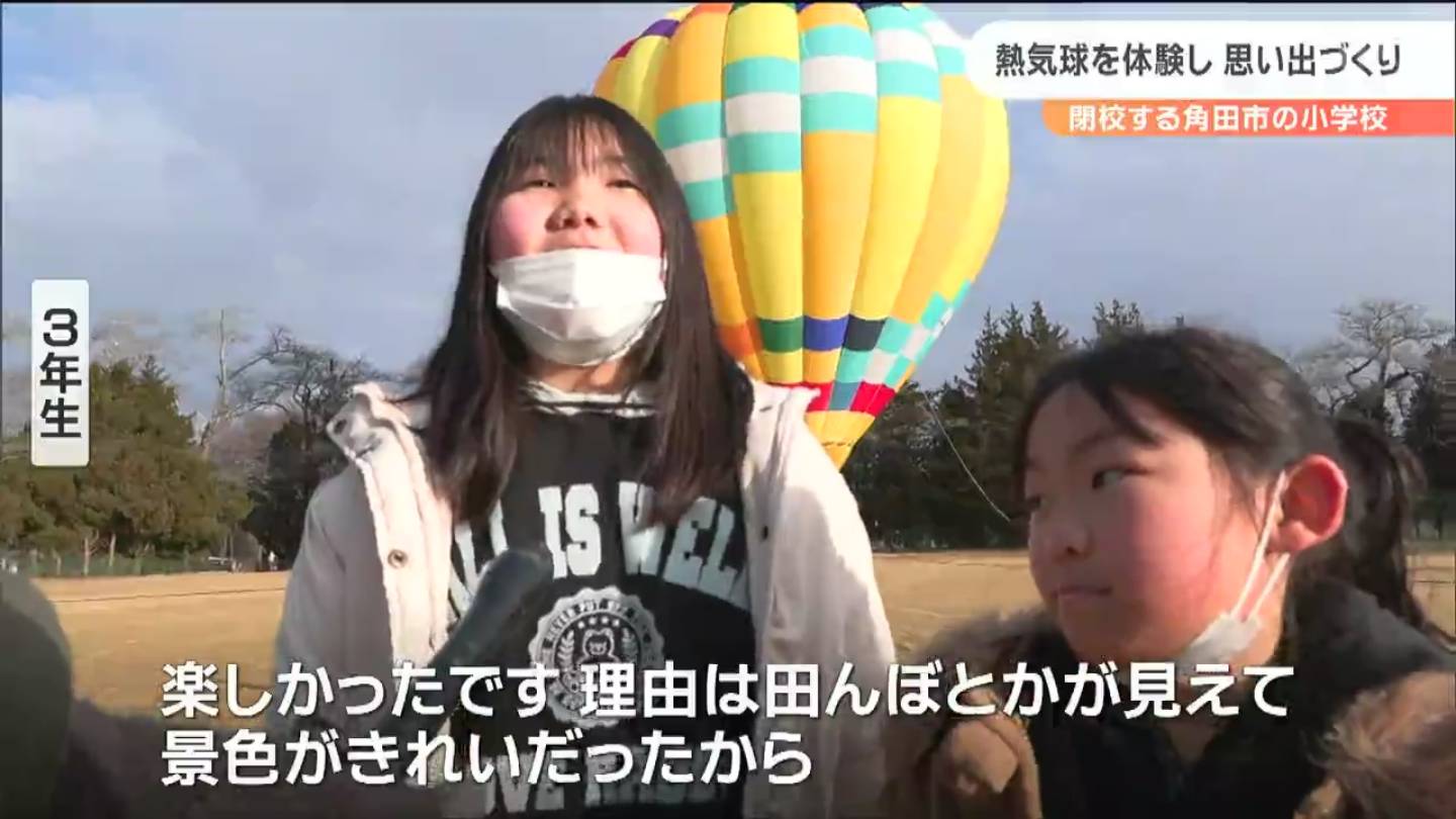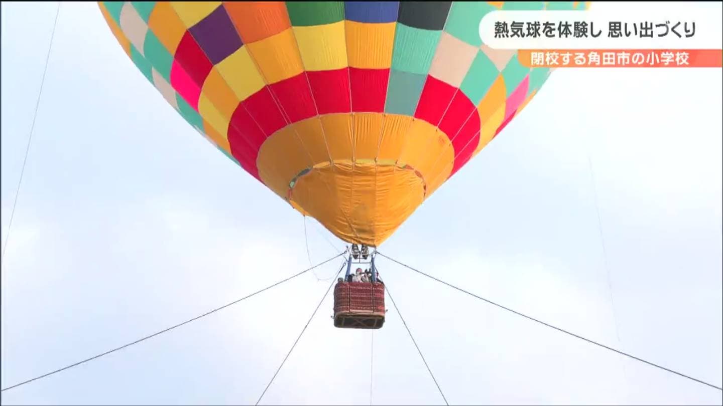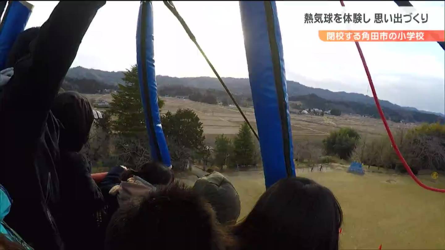 3月末で閉校する宮城県角田市の小学校で、3日、児童らが熱気球に乗って、最後の思い出をつくる催しが開かれました。