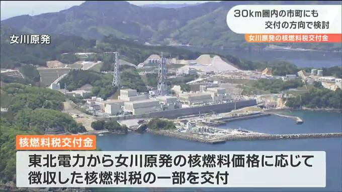 現在、女川原発が立地する2つの市と町だけに交付されている核燃料税交付金について、宮城県は、原発から30キロ圏内の市と町に対しても交付する方向で検討していることを明らかにしました。