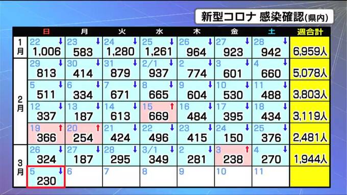 新型コロナウイルスについて県内では5日、新たに230人の感染と1人の死亡が確認されました。