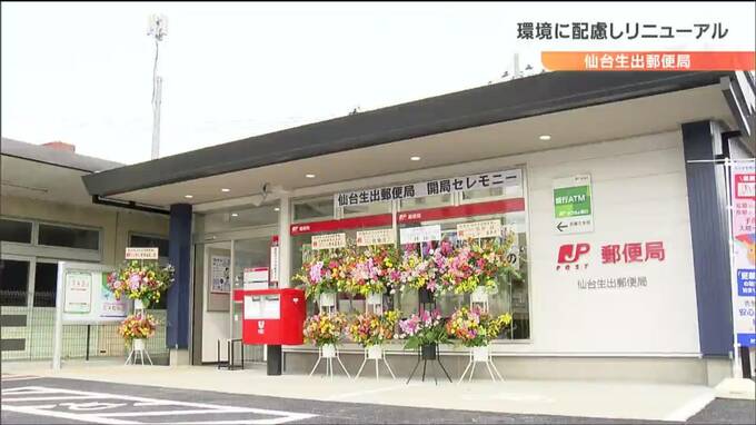 東北初「屋根に太陽光パネルを設置」など本格的に環境配慮した郵便局リニューアルオープン 仙台 2023年3月6日(月) 15:40 国内 仙台市の郵便局が東北では初めて本格的に環境に配慮した作りでリニューアルオープンしました。太白区茂庭にある仙台生出(おいで)郵便局は、旧店舗の老朽化に伴い同じ敷地内にリニューアルオープンしました。新店…