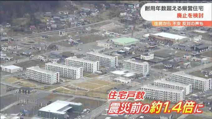 宮城県は人口減少などを見据え、今後、耐用年数を超える県営住宅などを順次、廃止する方向で検討しています。入居者には、転居費用の補償などもする方針ですが住民からは不安や戸惑いの声があがっています。
