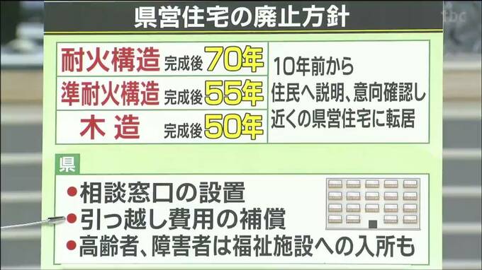 県は、廃止10年前から入居者への説明や意向を確認し、近くの県営住宅などに転居してもらう方針です。