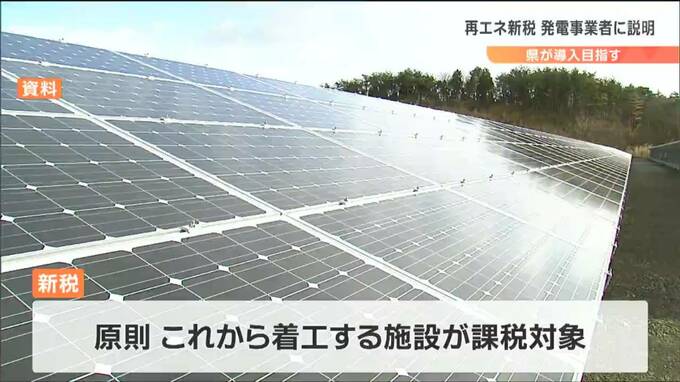 県は「地域に寄り添った事業計画を」再エネ新税で初の事業者説明会「着工前であっても変更は難しい」の声も 宮城 2023年3月7日(火) 17:00 国内 宮城県が導入を目指す再生可能エネルギー発電施設による森林開発などを抑制するための新税について、初の事業者説明会が開かれました。オンラインで開かれた説明会には、全国の発電事業者など28社が参加しました。…