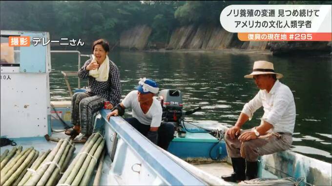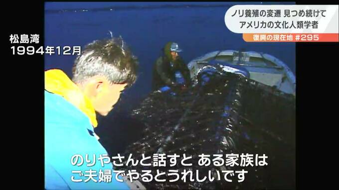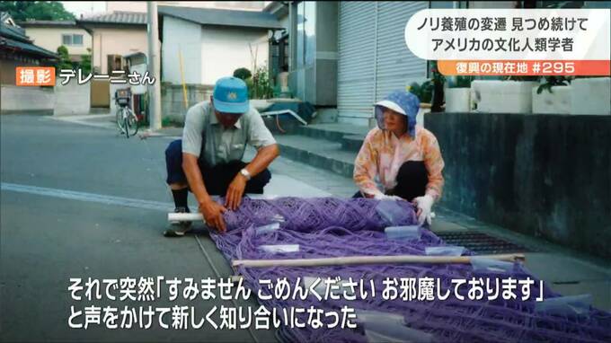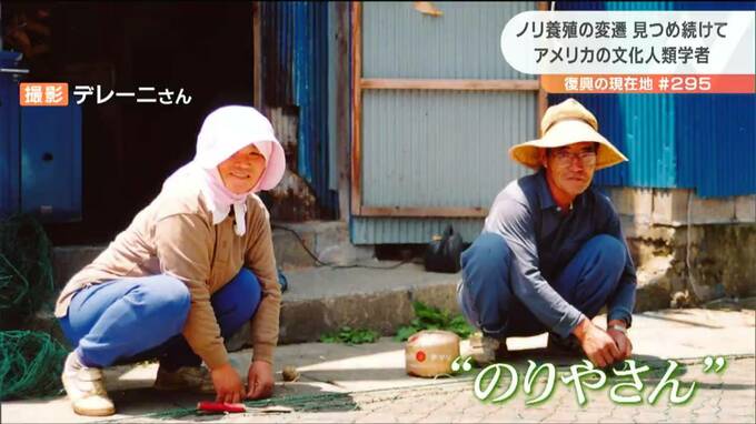 デレーニさんが1990年代に撮影した写真です。そこに映るのはノリ養殖を営む夫婦の姿。デレーニさんは愛着をもって「のりやさん」と呼びます。